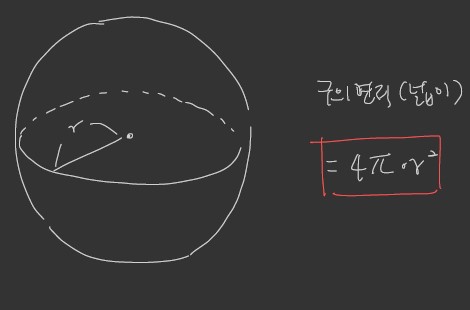 4 X (원주율) X (반지름의 제곱) - 어째서 구의 넓이가 저런 공식을 사용하는지가 아니라 공식을 활용해야 한다.