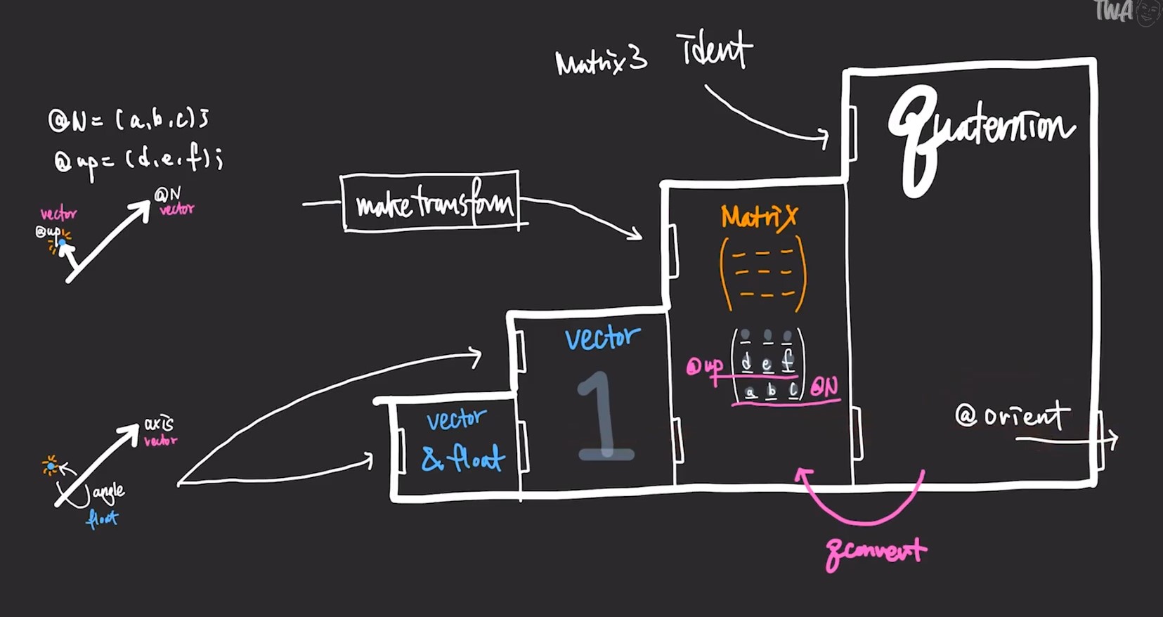 - maketransform( 축의 방향 @N, 머리 방향 @up ) ⬅ 순서가 매우 중요하다.