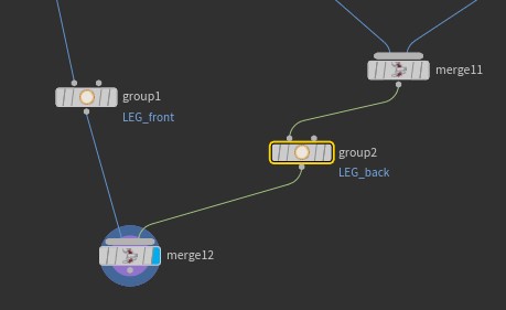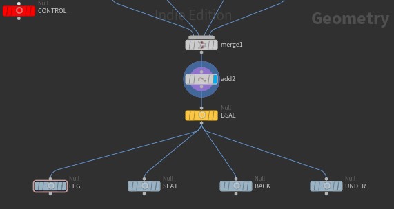 - Object Merge 노드로 불러온 오른쪽 다리 노드를 등받이와 연결